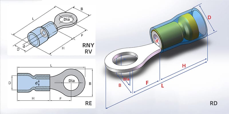 Available in M3 to M8 stud sizes and compatible with AWG 22–10 wires, these insulated ring terminals are widely used in electrical control panels, industrial equipment, automotive wiring systems, power distribution units, and general electrical installations. Their structured insulation design improves wiring organization and enhances long-term connection stability.
