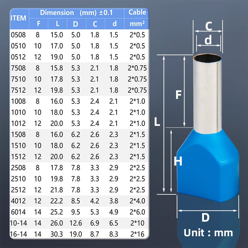 Manufactured from high-quality copper with a durable PVC insulated sleeve, these twin wire ferrules ensure excellent electrical conductivity while offering enhanced mechanical protection and user safety during installation.